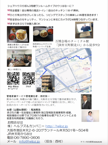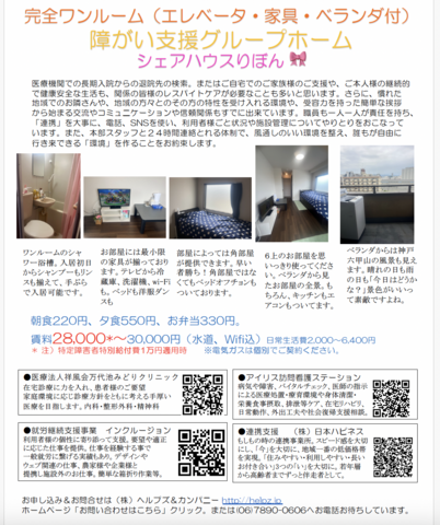 #大阪市 #大阪市港区 #障害者福祉 #障害者支援 #グループホーム #万博 #弁天町 #就労支援 #就労継続支援b型事業所 #就労継続支援 #就労移行支援 #就労支援b型 #障害者施設 #共同生活援助 #シェアハウス #強度行動障がい支援 #精神 #知的 #ワンルーム #ユニットバス.
