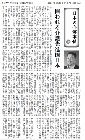 人口減少下での日本での労働力に無駄をこれ以上は生むわけにはいきません。さらに、そうでなくても非合理と言われる介護労働者のそれが行き過ぎると、少人数の介護労働者の時間の拘束による「過剰労働」に直結する可能性もあることも事実です。今一度、「介護の合理的とは?」と見直しも必要とは感じています。介護の非合理性を日本の文化と早合点して改善することをしないままでは「世界の介護サービス先進国日本」としての信用も高まらないでしょう。その視点をぶらさずに「新しい合理的な日本の介護」をAIやデジタル技術を通して発見していくことが事業所には求められていくと私は確信しています。(週刊NY生活905号 2023/3/18より抜粋)